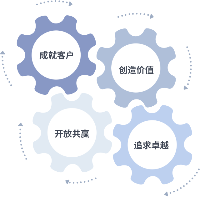 成就客户是一切决策的出发点,创造价值是衡量所有工作的标准,追求卓越是门徒娱乐做事做人的态度,开放共赢是门徒娱乐的格局也是最终的结果。价值观的齿轮环环相扣,推动着组织里的每个人不断向前。